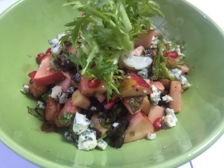 (свіжообсмаженої філе індички на салатному міксі з яблуками під гранатовим дрессингом)